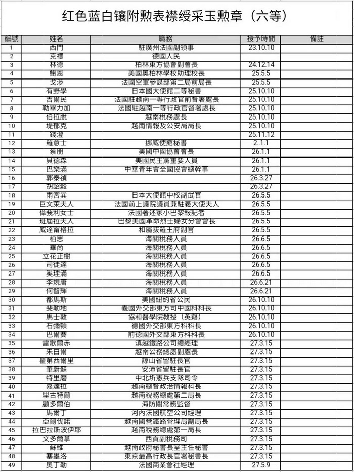 笔者整理了一至九等采玉勋章的编号姓名对照清册供同好对自己的收藏进行对照。